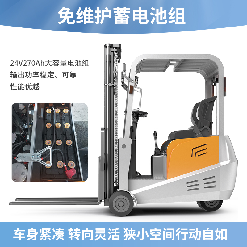 揚(yáng)子三支點(diǎn)座駕式平衡重電動(dòng)叉車(chē)CPD-A,動(dòng)力強(qiáng)能耗低免維護(hù)低噪音,車(chē)身小巧/全車(chē)LED警示燈/制動(dòng)雙保險(xiǎn)